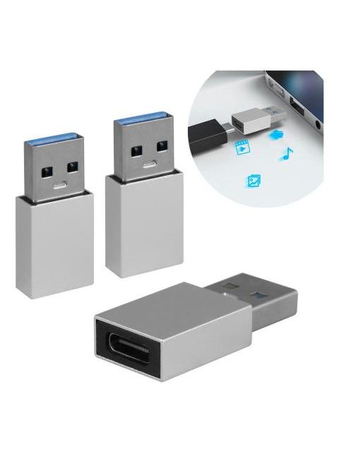 3 PIEZAS ADAPTADOR OTG USB MACHO A TIPO C HEMBRA CONVERTIDOR PLATEADO