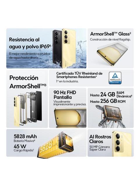 REALME C75 4G 8GB RAM 256GB ROM DUAL SIM 6.72 90HZ PANTALLA 50MP CAMARA 5828MAH NFC IP69 COLOR DORADO