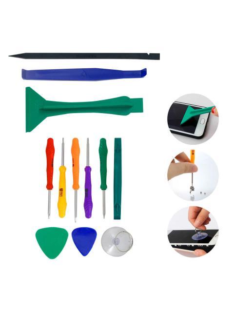 KIT DE HERRAMIENTAS 12 EN 1 PARA REPARACION DE CELULARES DESARMADOR ESPATULAS Y VENTOSA SLIM COMPANY